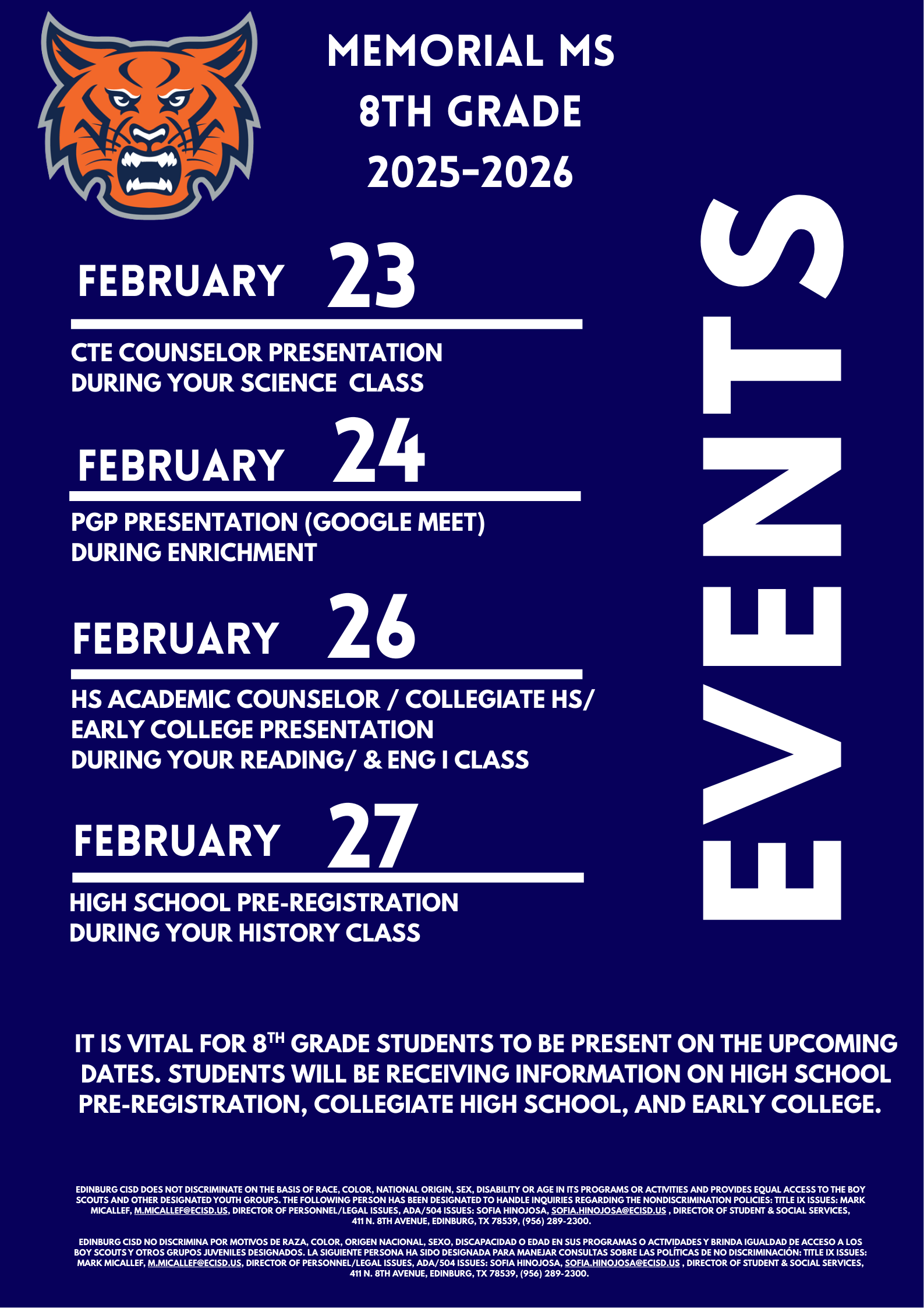 Memorial Middle School 8th Grade Events